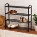 Wooden shoe rack with iron framing in a polished, gleaming finish. Featuring 4 tiers with arched piecing at ends to give your shoes a pretty place to rest.