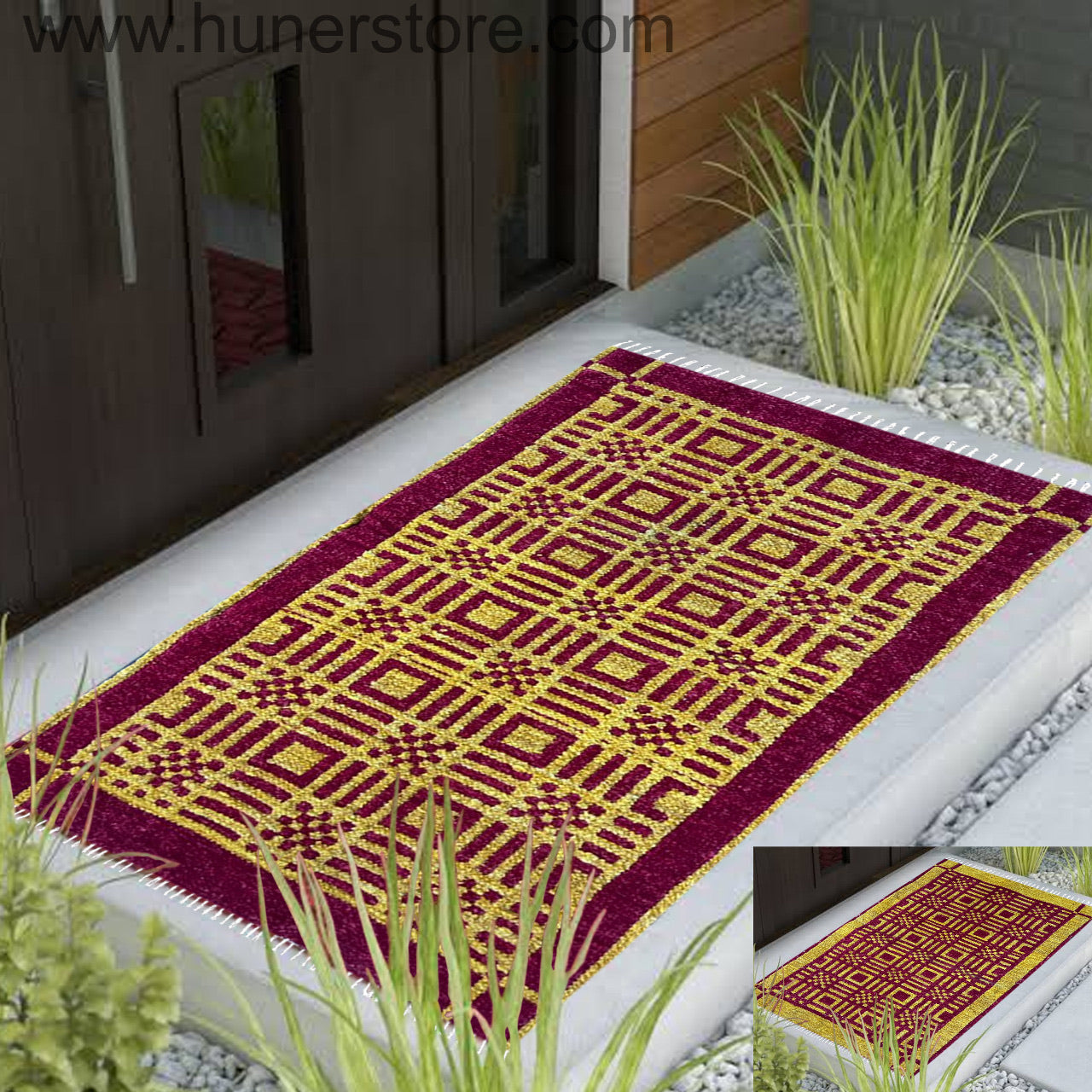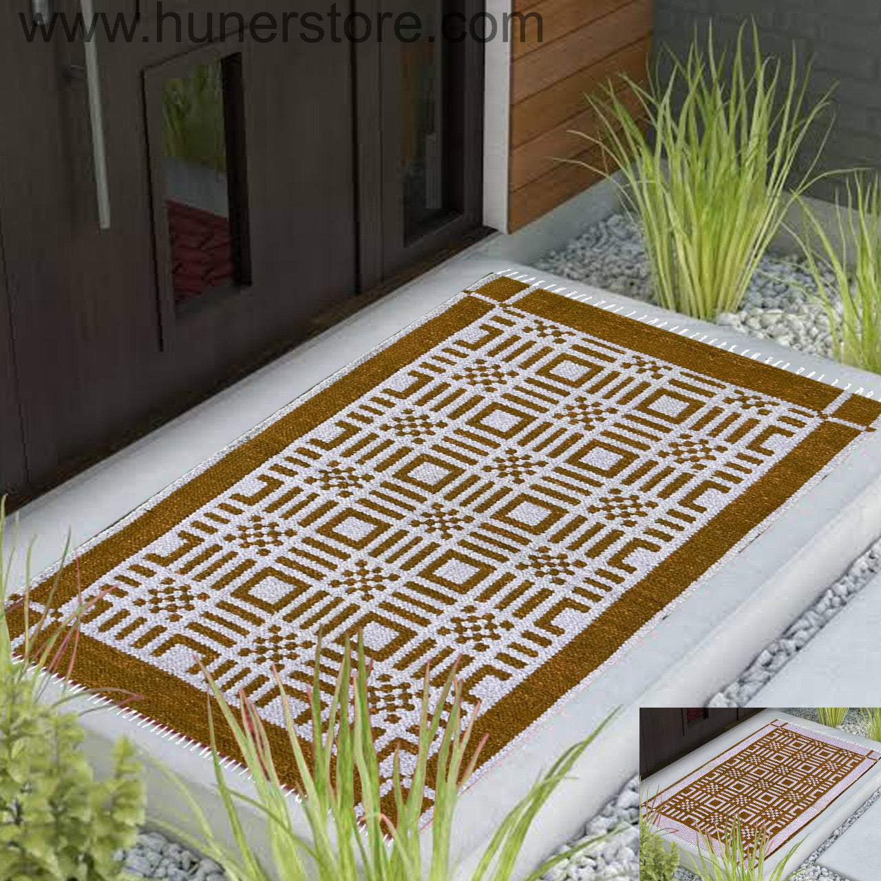 Arabic style hand-woven Woolen Rug by the skilled handicrafts men of Pakistan. The rug is made of wool, which makes it naturally soil-repellent and hard-wearing. Ideal in your living room or under your dining table since the flat-woven surface makes it easy to be a perfect companion for all types of flooring.