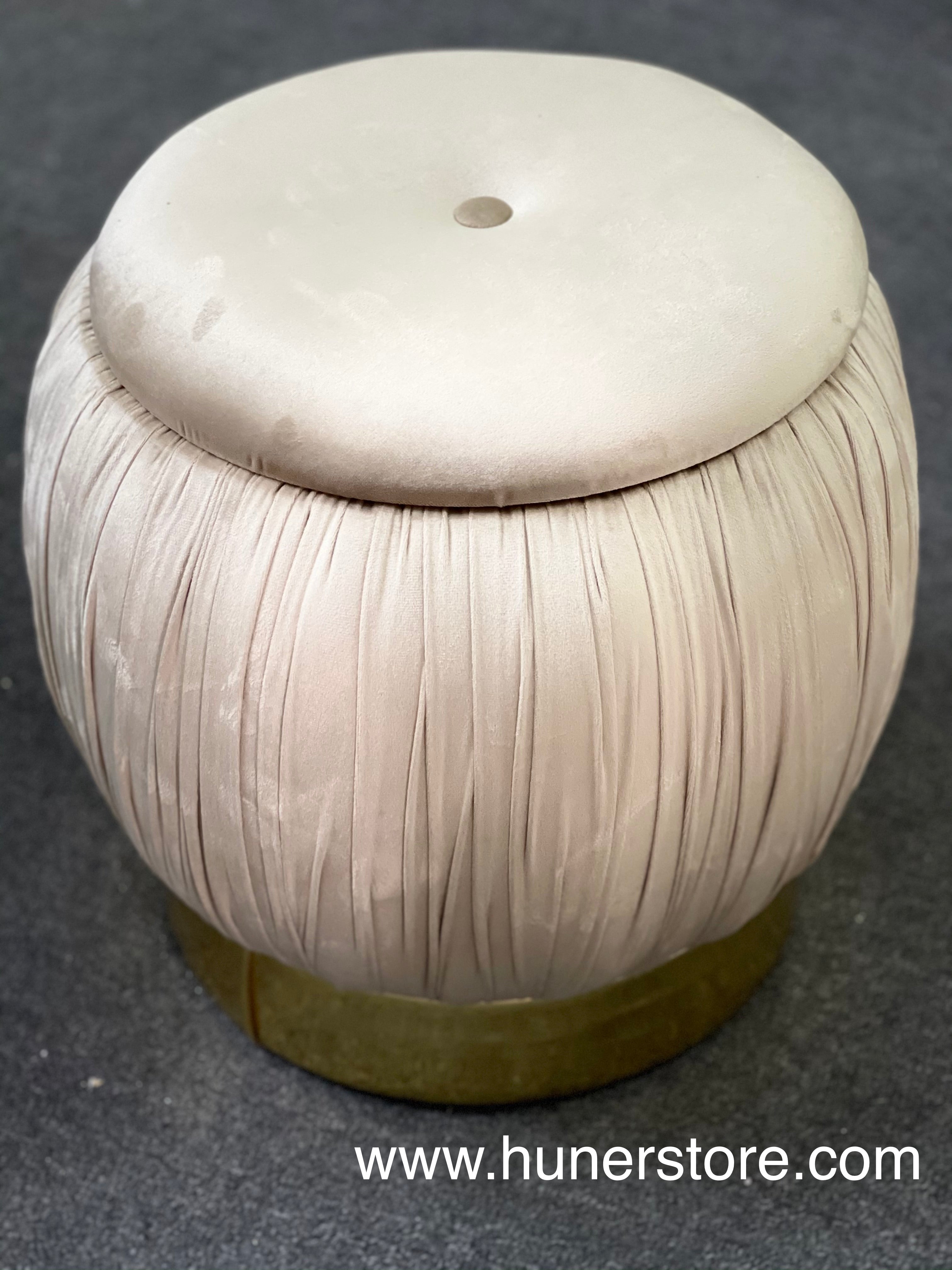 Handcrafted things never go out of style. A skillful masterpiece of art and tradition, this item are all hand-crafted by our locals who have been perfecting their skill for the past decades! Beige round Velvet tufted ottoman with stainless steel gold base.