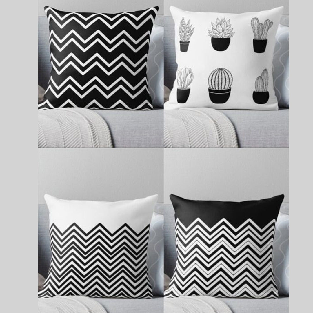 1 * Black and White Cactus Cushion Covers (4 cushion covers only)