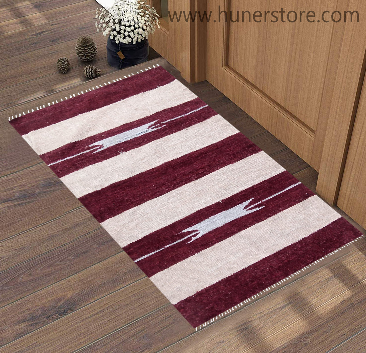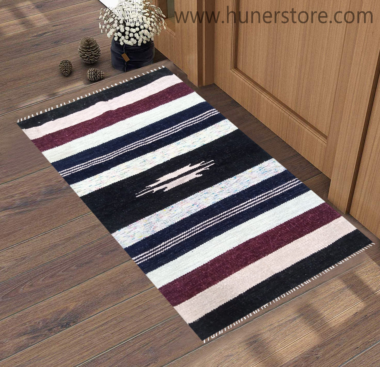 Mosaic daree by the skilled handicrafts men of Pakistan. naturally soil-repellent and hard-wearing. Ideal in your living room or under your dining table since the flat-woven surface makes it easy to be a perfect companion for all types of flooring.