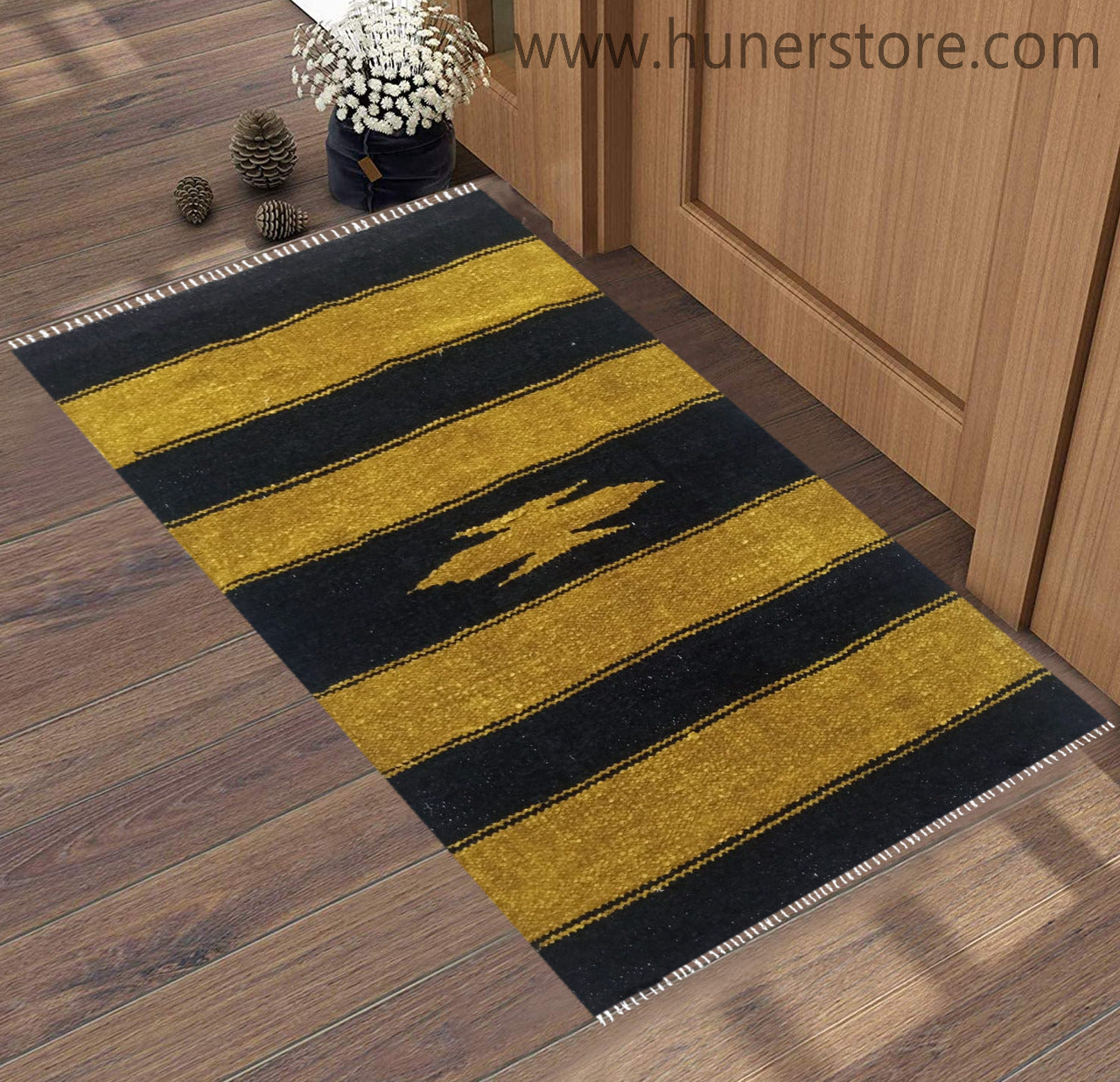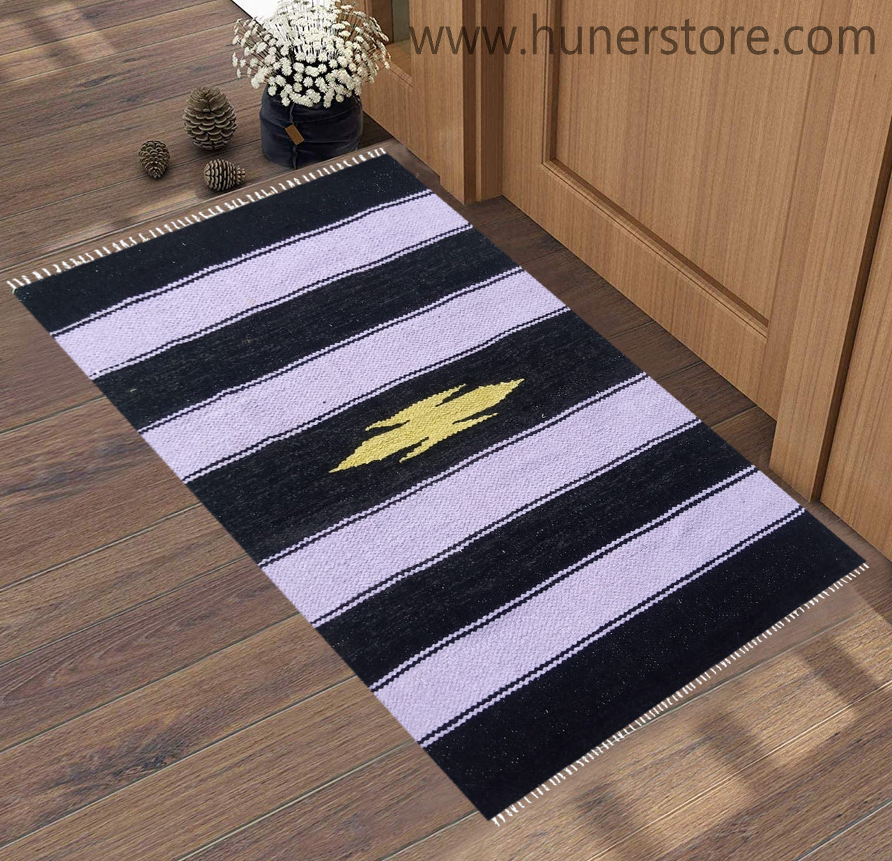 Mosaic daree by the skilled handicrafts men of Pakistan. naturally soil-repellent and hard-wearing. Ideal in your living room or under your dining table since the flat-woven surface makes it easy to be a perfect companion for all types of flooring.