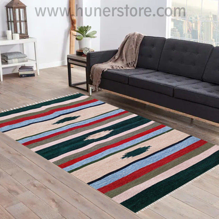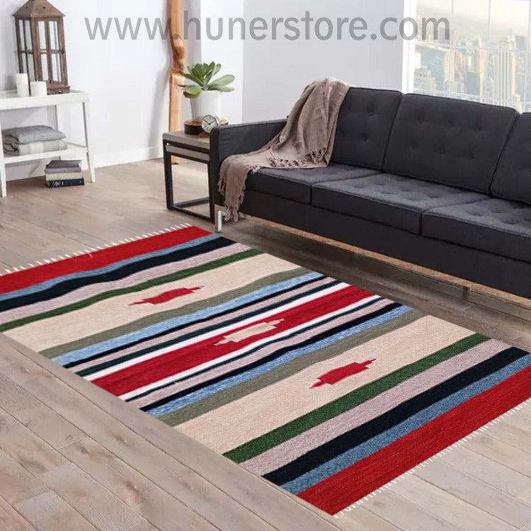 Handwoven kilim by the skilled artisans, these floor double sided kilims provide a rich cultural embellishment to your living rooms.