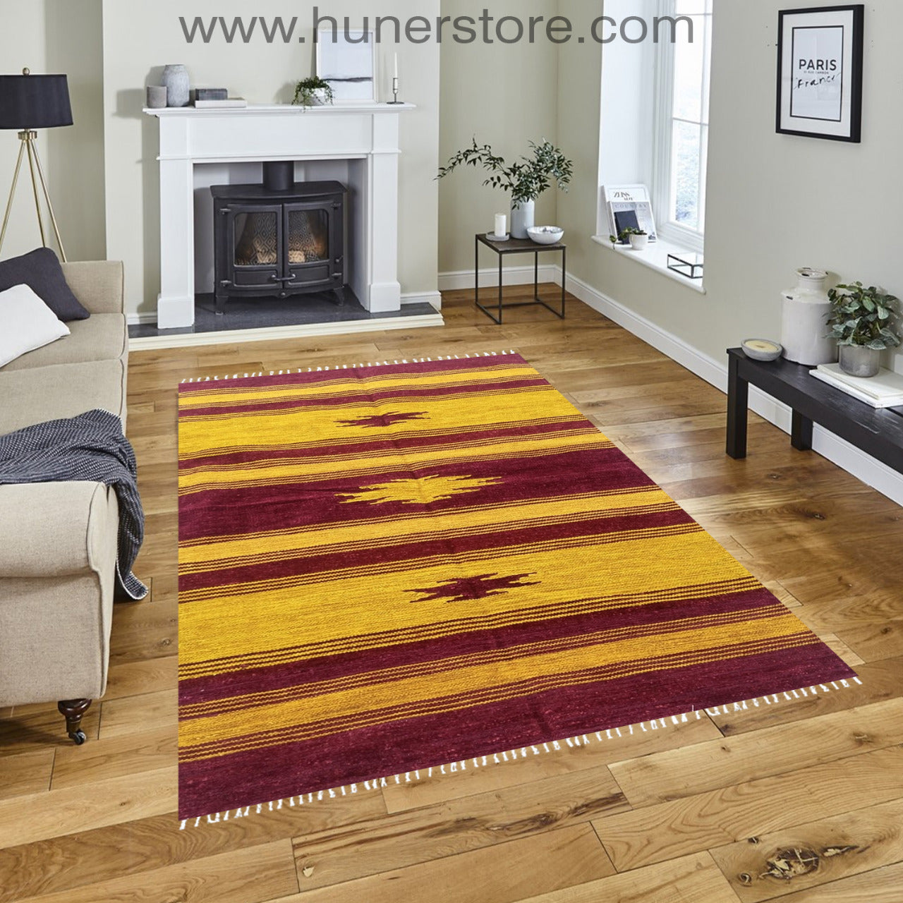Handwoven kilim by the skilled artisans, these floor double sided kilims provide a rich cultural embellishment to your living rooms.