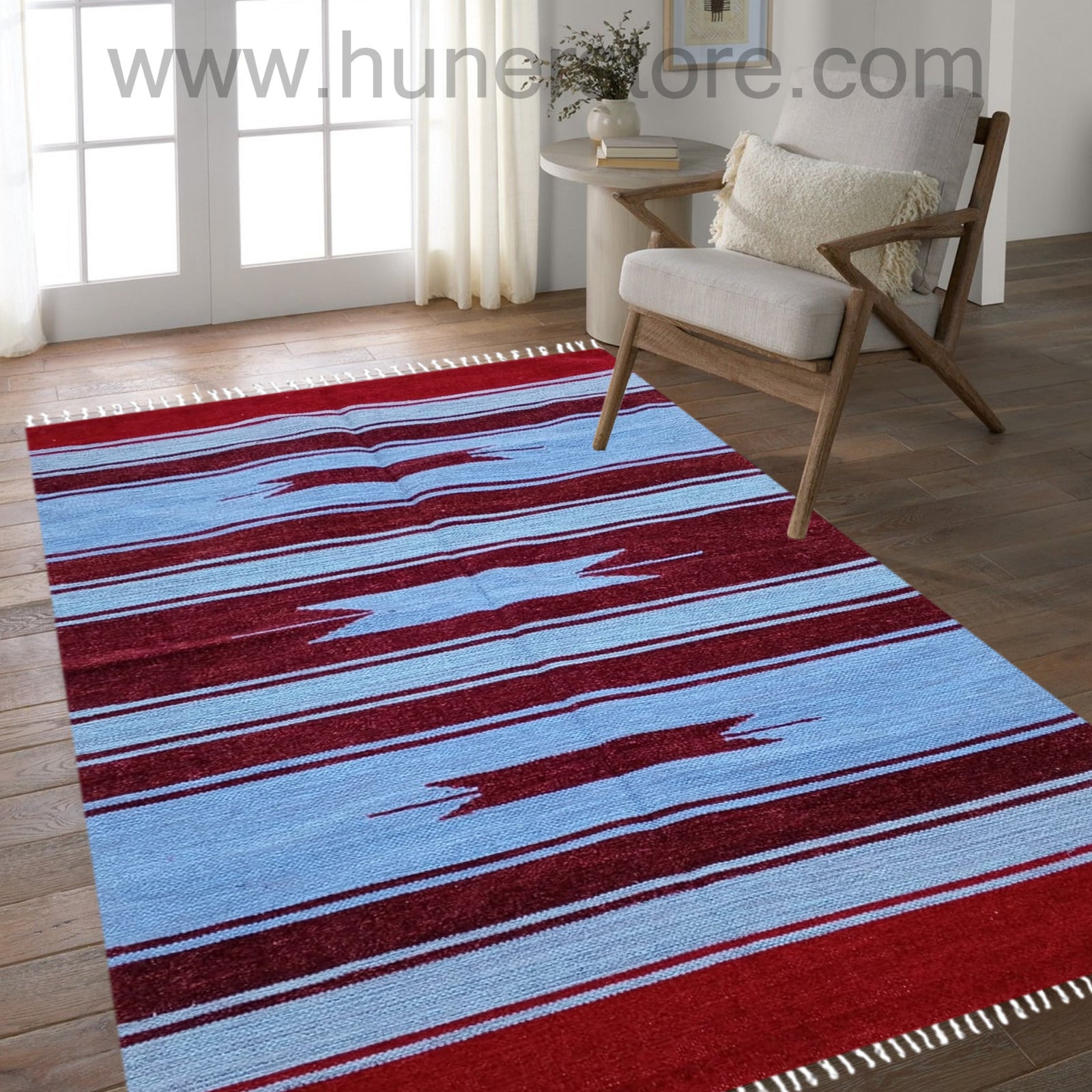 Handwoven kilim by the skilled artisans, these floor double sided kilims provide a rich cultural embellishment to your living rooms.
