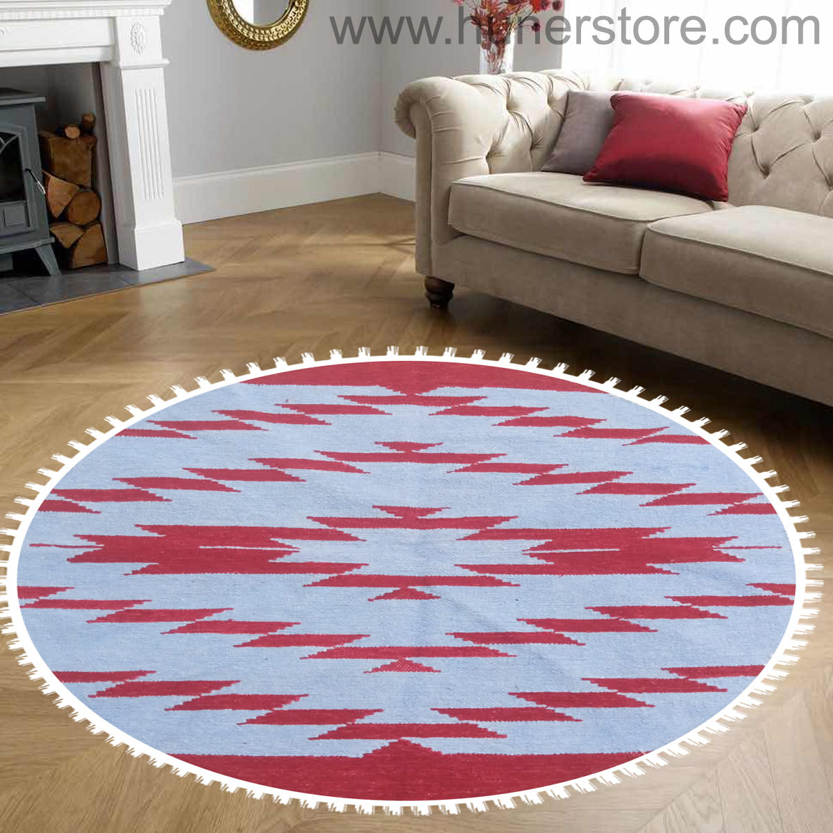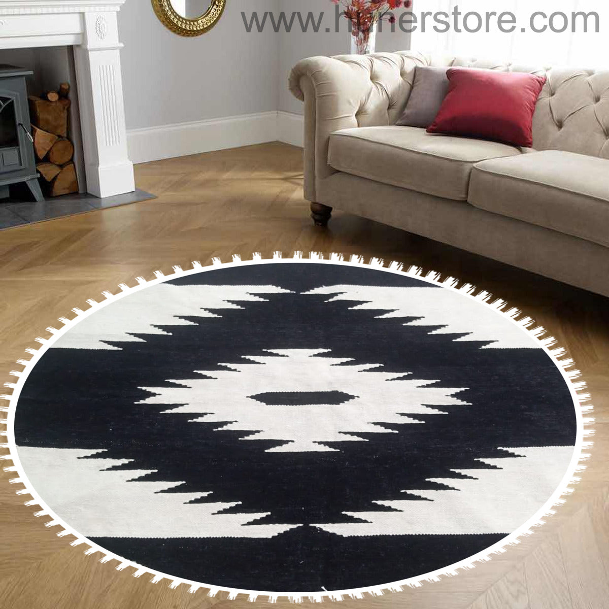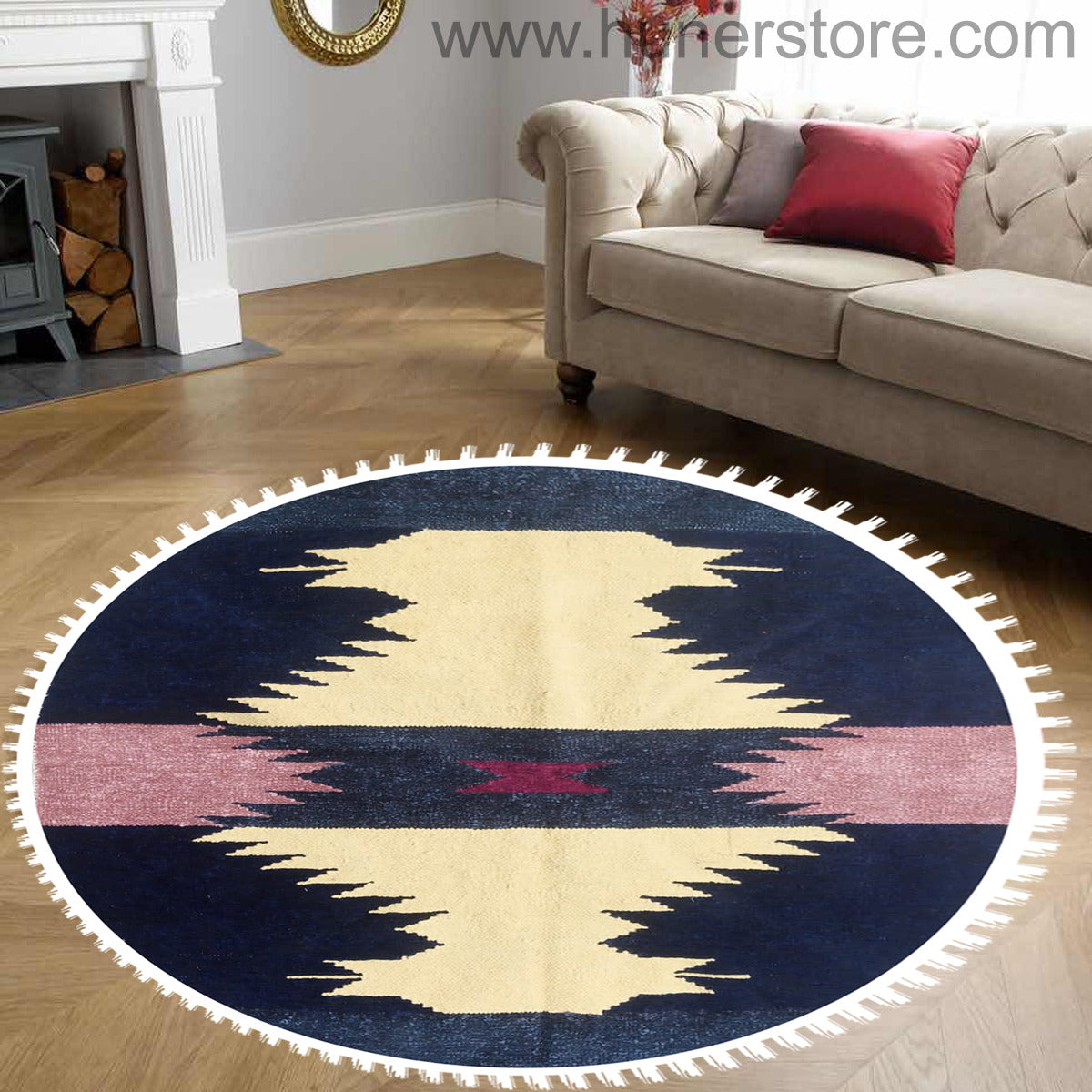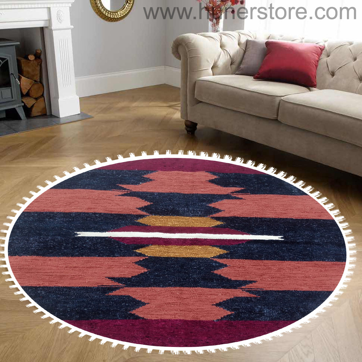 Features: Woolen Hand woven rug multi stripes round shape by the skilled handicrafts men of Pakistan. The rugs are made of wool, which makes them naturally soil-repellent and hard-wearing. Ideal in your living room or under your dining table since the flat-woven surface makes it easy to be a perfect companion for all types of flooring.