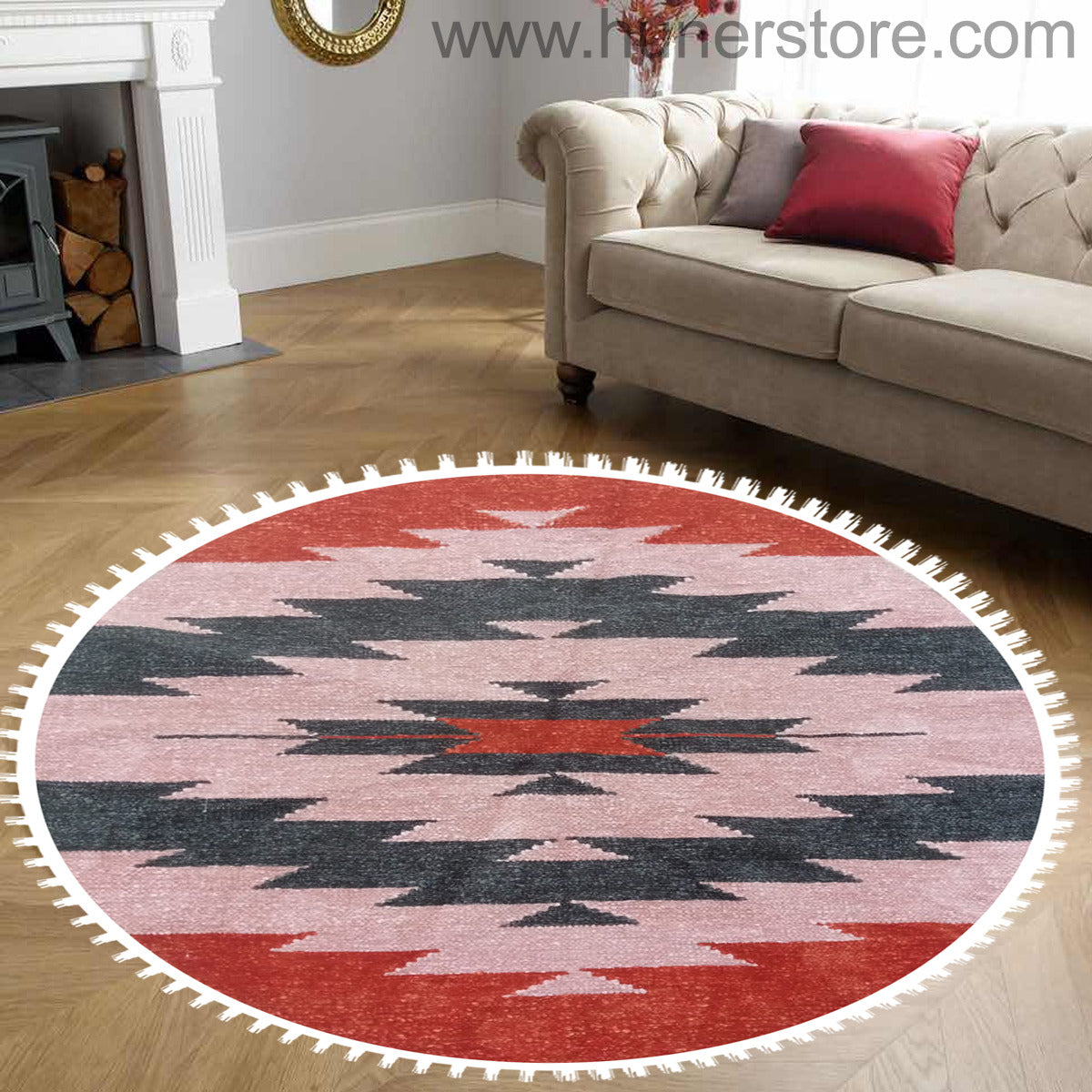 Round rugs are same from both sides and slightly thinner than other rugs in making.
