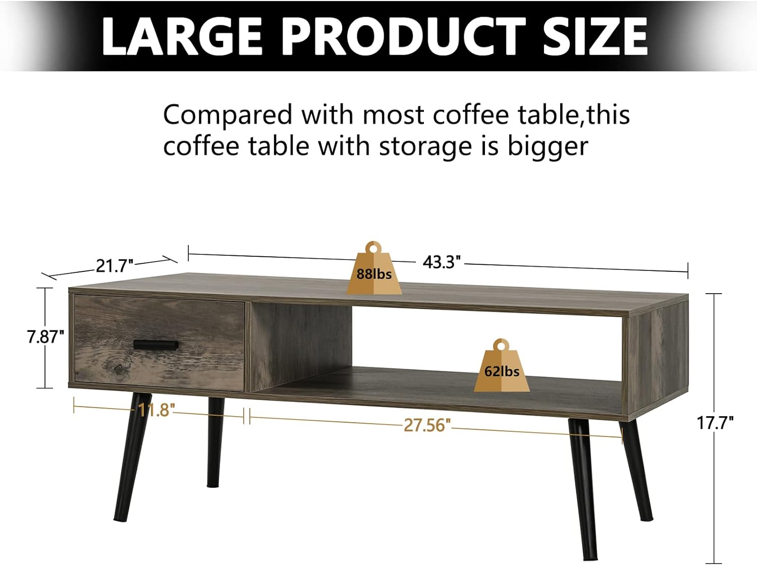 - This farmhouse coffee table with storage bundles functionality and farm aesthetics into one. Not only keeps the living room neat and tidy but complements the surrounding furniture and decor, feels inviting and welcoming, gathers the family around, and enjoy the warmth and intimate ambiance.