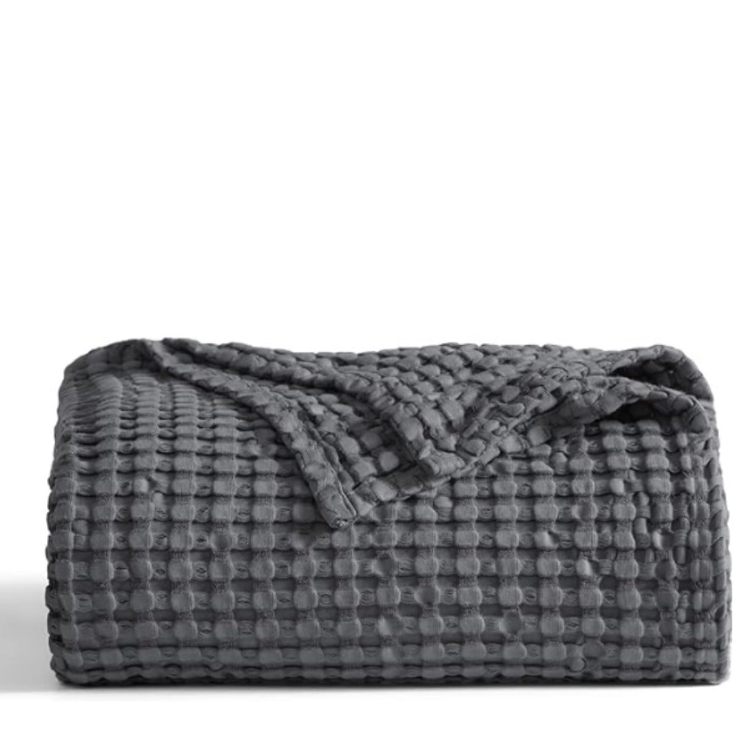 Snuggle under the comforting warmth and weight of the Organic Cotton waffle weave twin blanket.