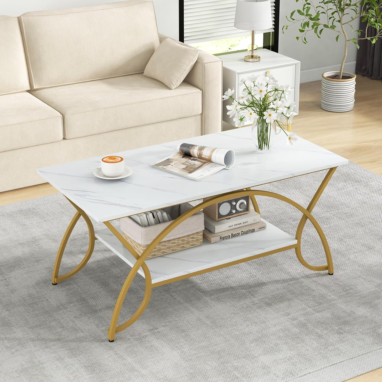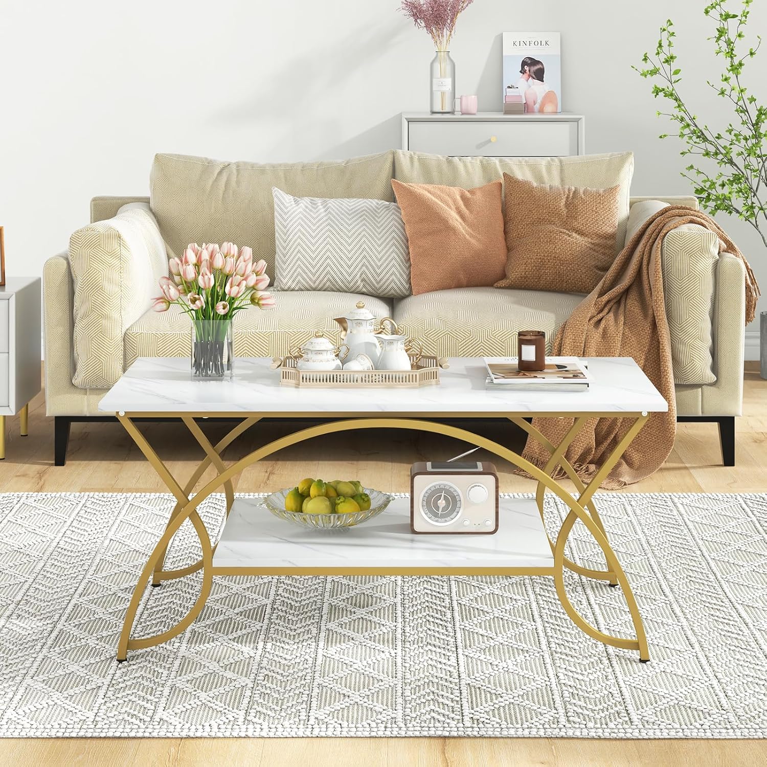 - Paired with the sleek golden frame, the contemporary coffee table can match the existing room furniture of different styles and add to a modern flair to your living room.