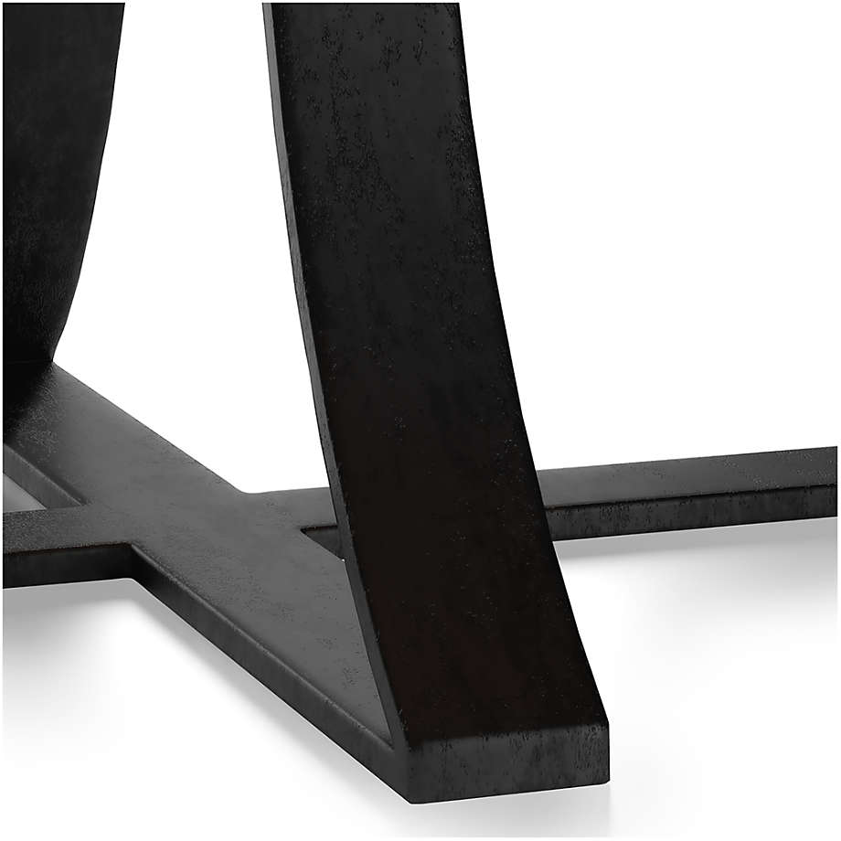 - Gunmetal-finished iron forms uniquely curved angles to balance a contrasting brown tabletop of rich solid wood.