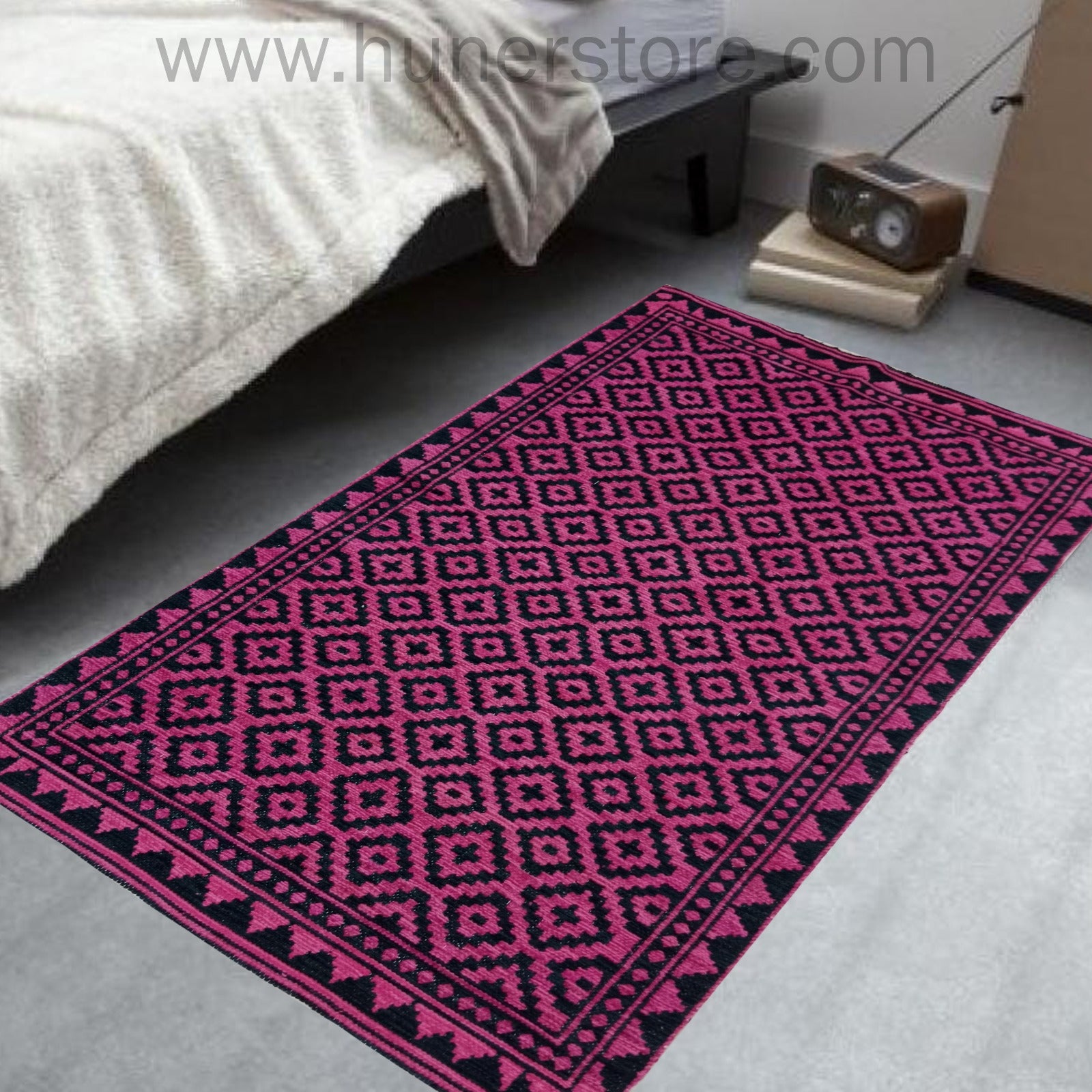 Experience the elegance of handmade rugs, door mats, and long runners from Pakistan, crafted with care by talented artisans. Each piece is soft underfoot, easy to wash, and designed with a bold yet simple color combination, usually highlighting one primary shade for a timeless, versatile look.