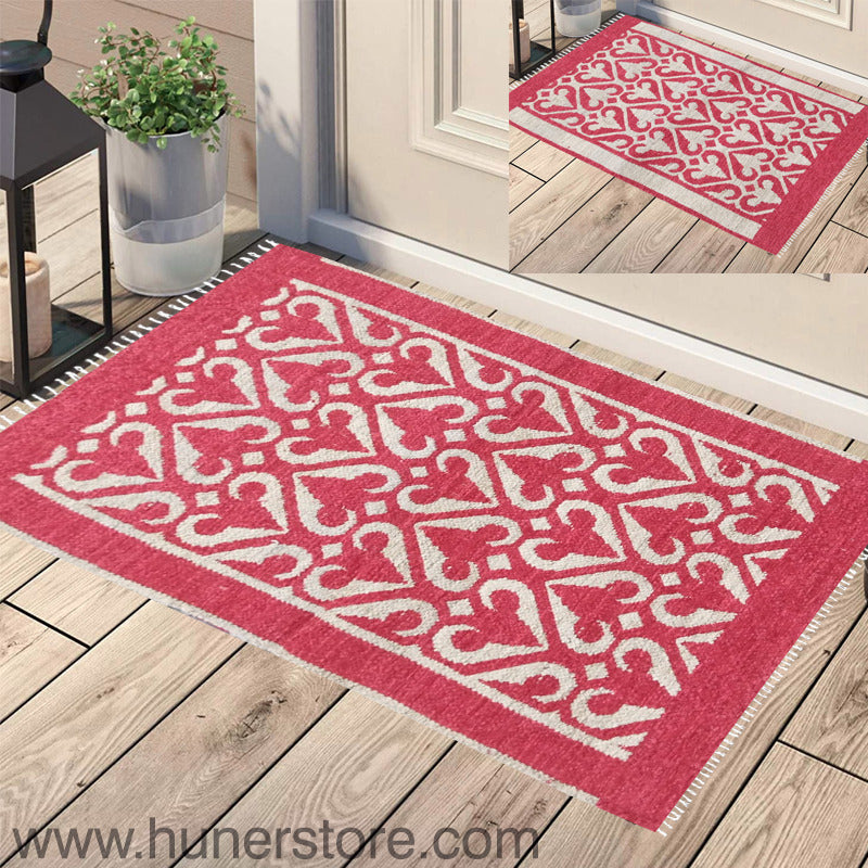 Floral Geometric Hand - woven by the skilled artisans, these floor mats provide a rich cultural embellishment to your living rooms.