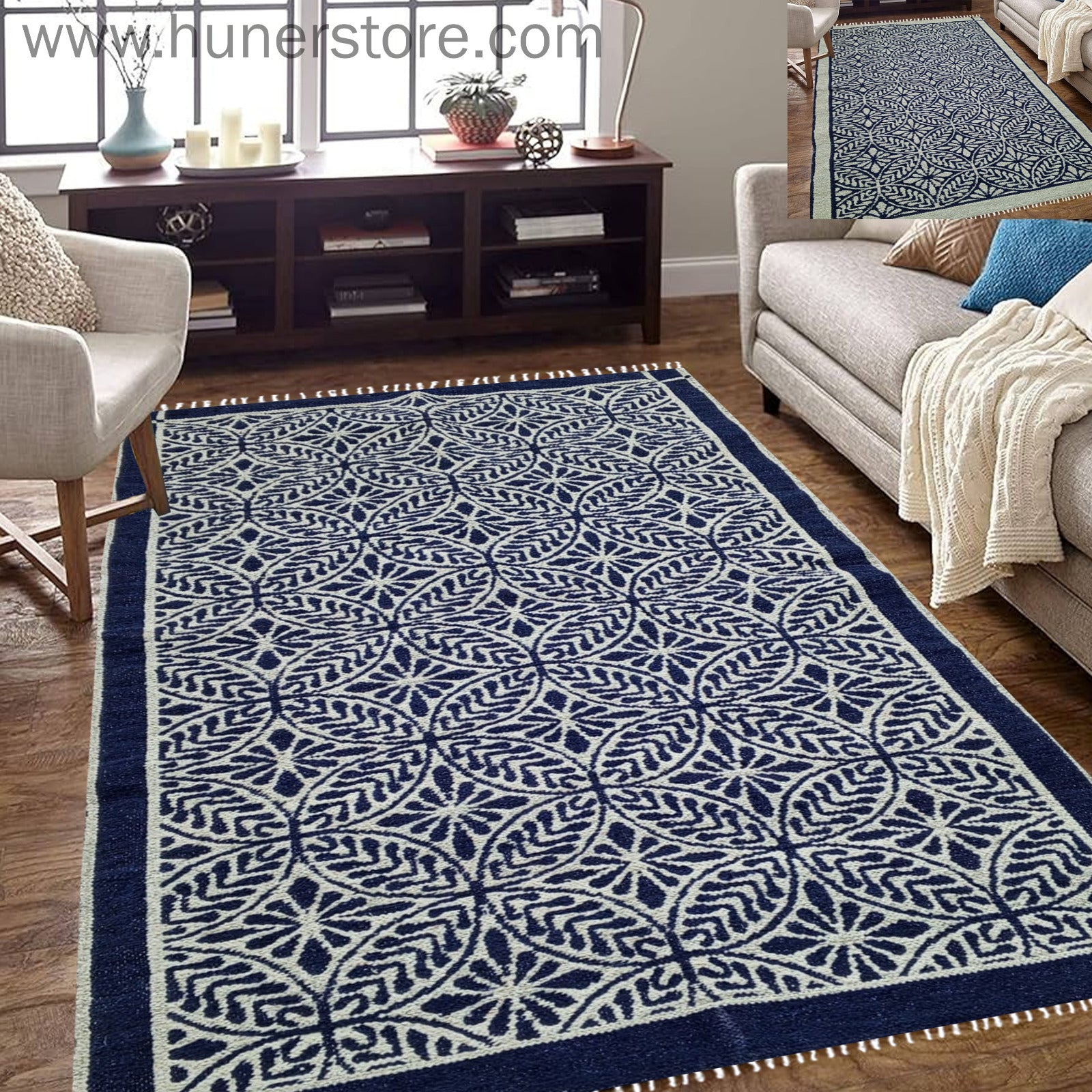 Rhombus Handwoven woolen rugs by the skilled artisans, these floor double sided rugs provide a rich cultural embellishment to your living rooms.