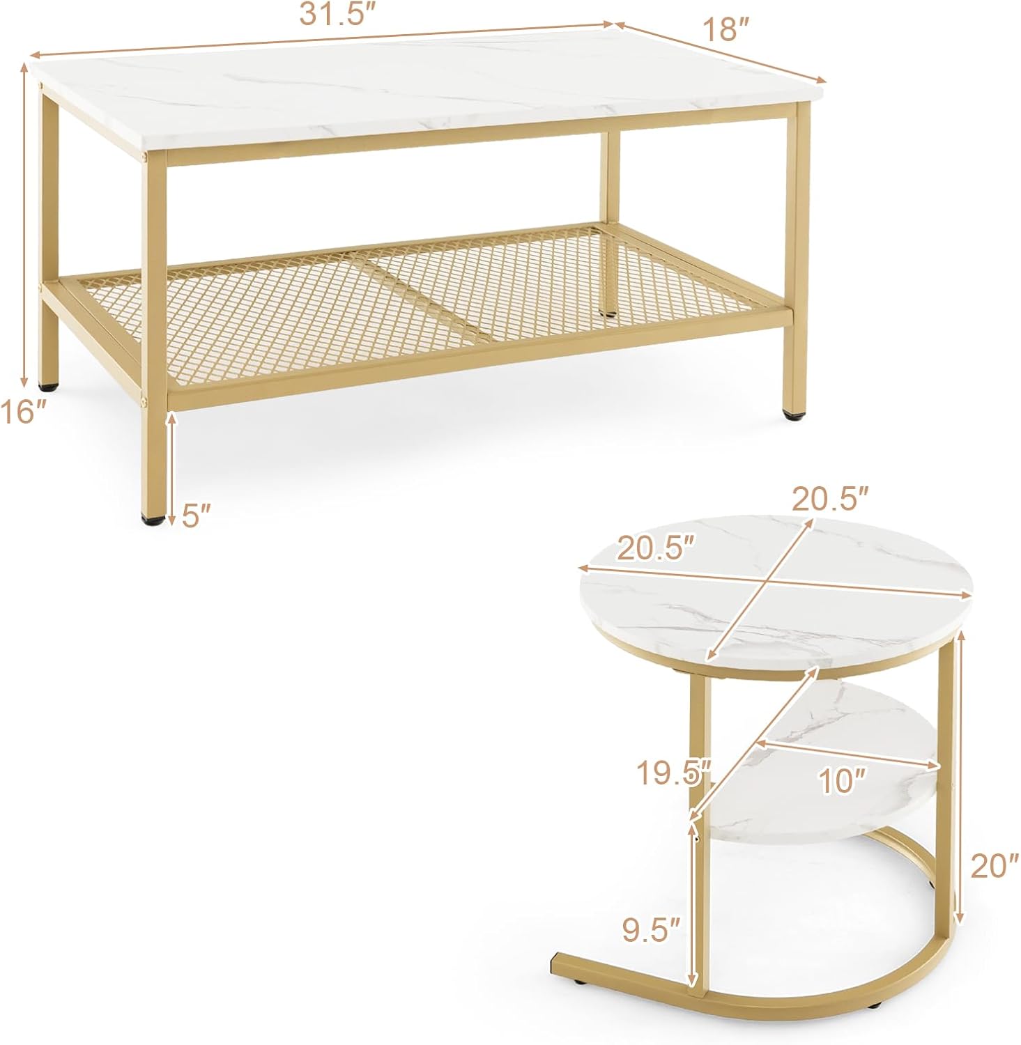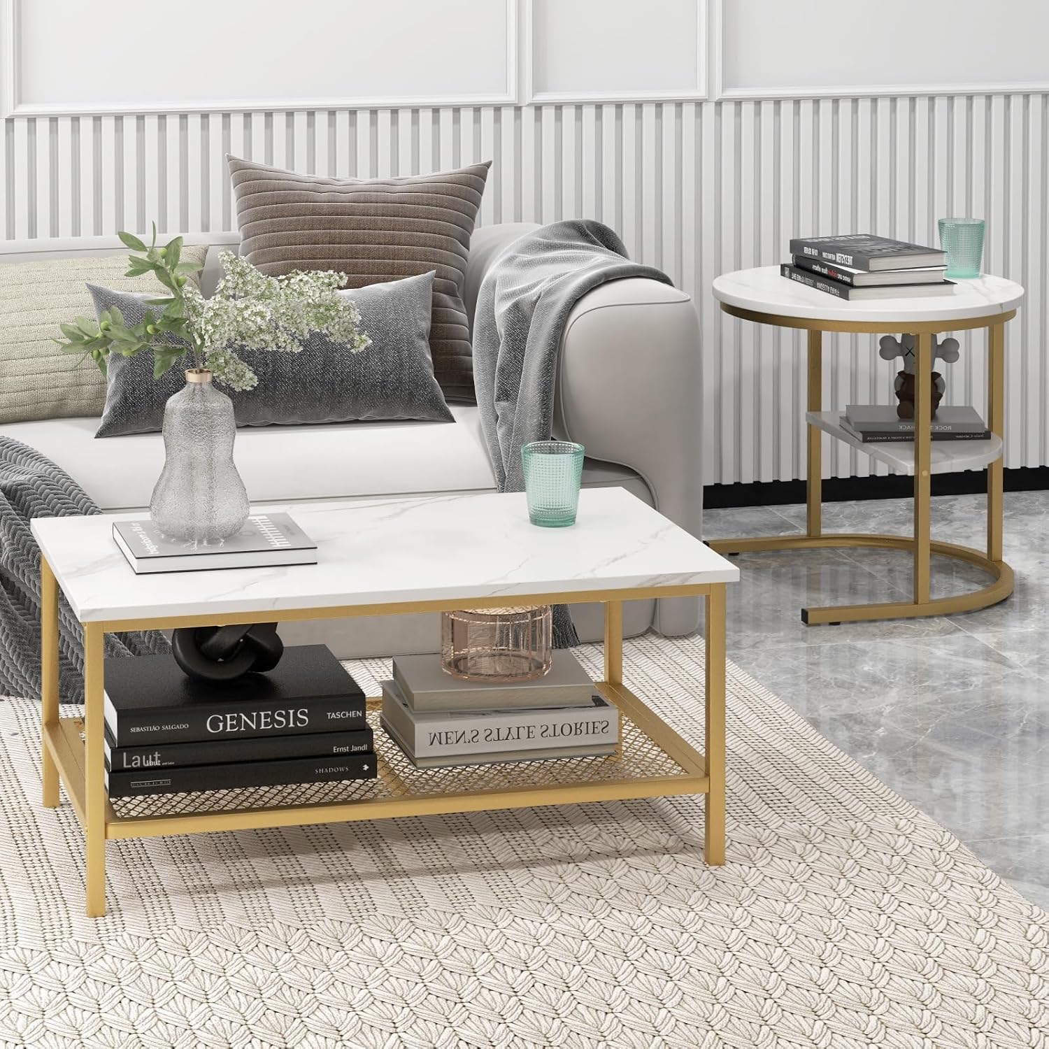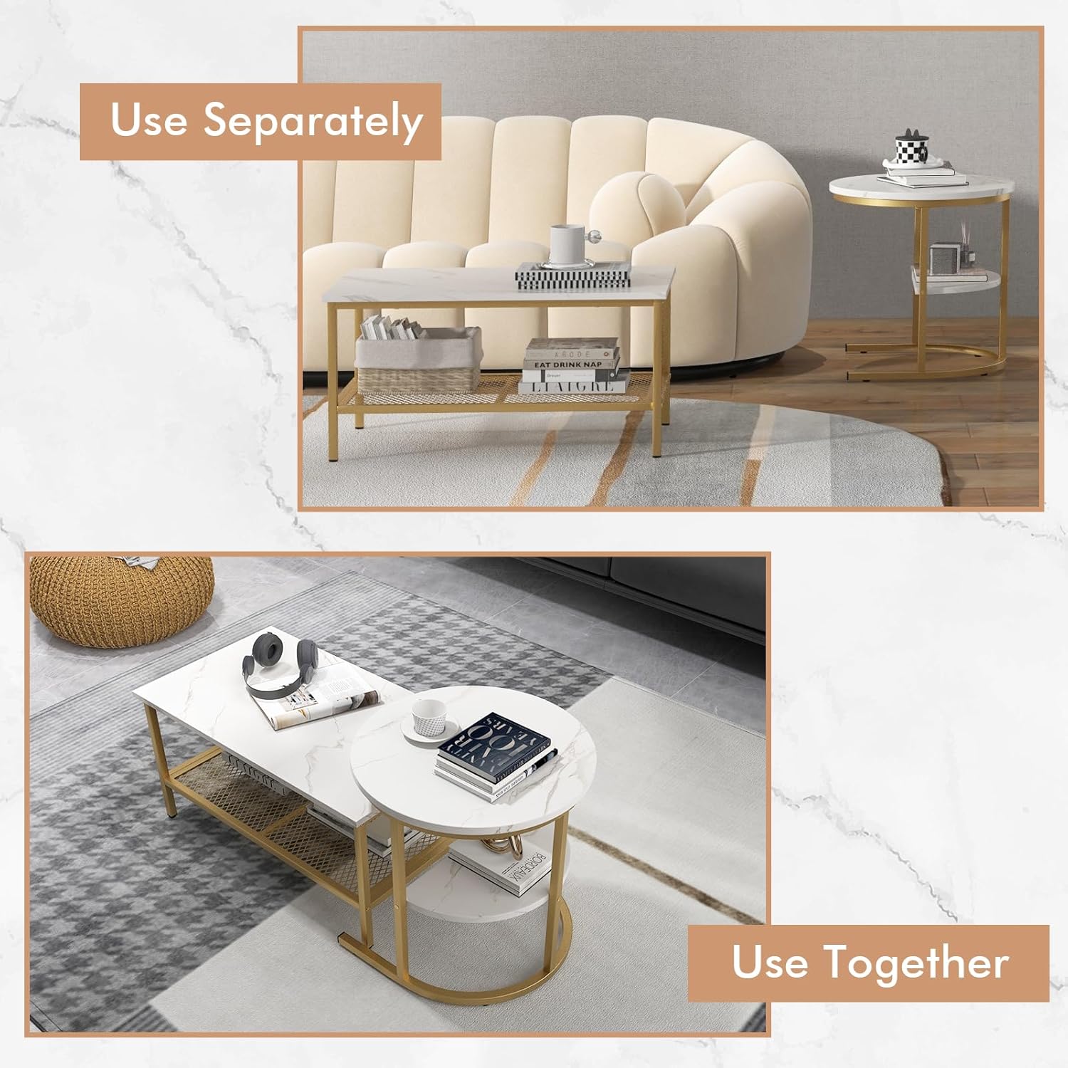 - Thanks to the detachable design, the modern coffee table set allows you to use it together or take it apart to get a large rectangular coffee table and a small round side table. Plus, the legs of the mall table can be placed under the sofa to save space.