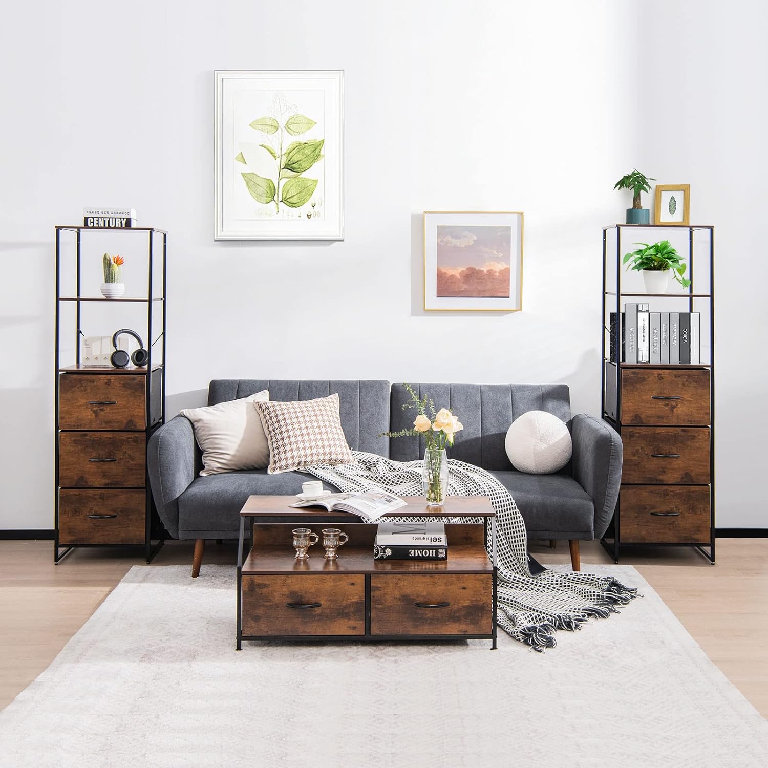 - With industrial style and sleek lines, the storage tower creates a touch of rustic look and fits seamlessly with the interior. In addition, it is a charming addition to various occasions such as study, living room and bedroom.