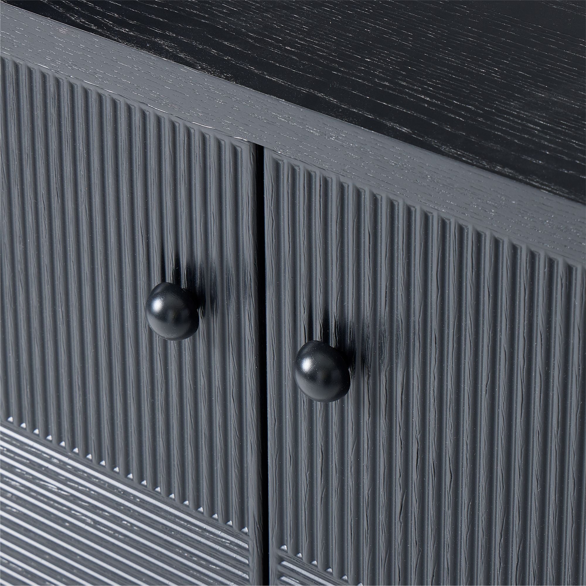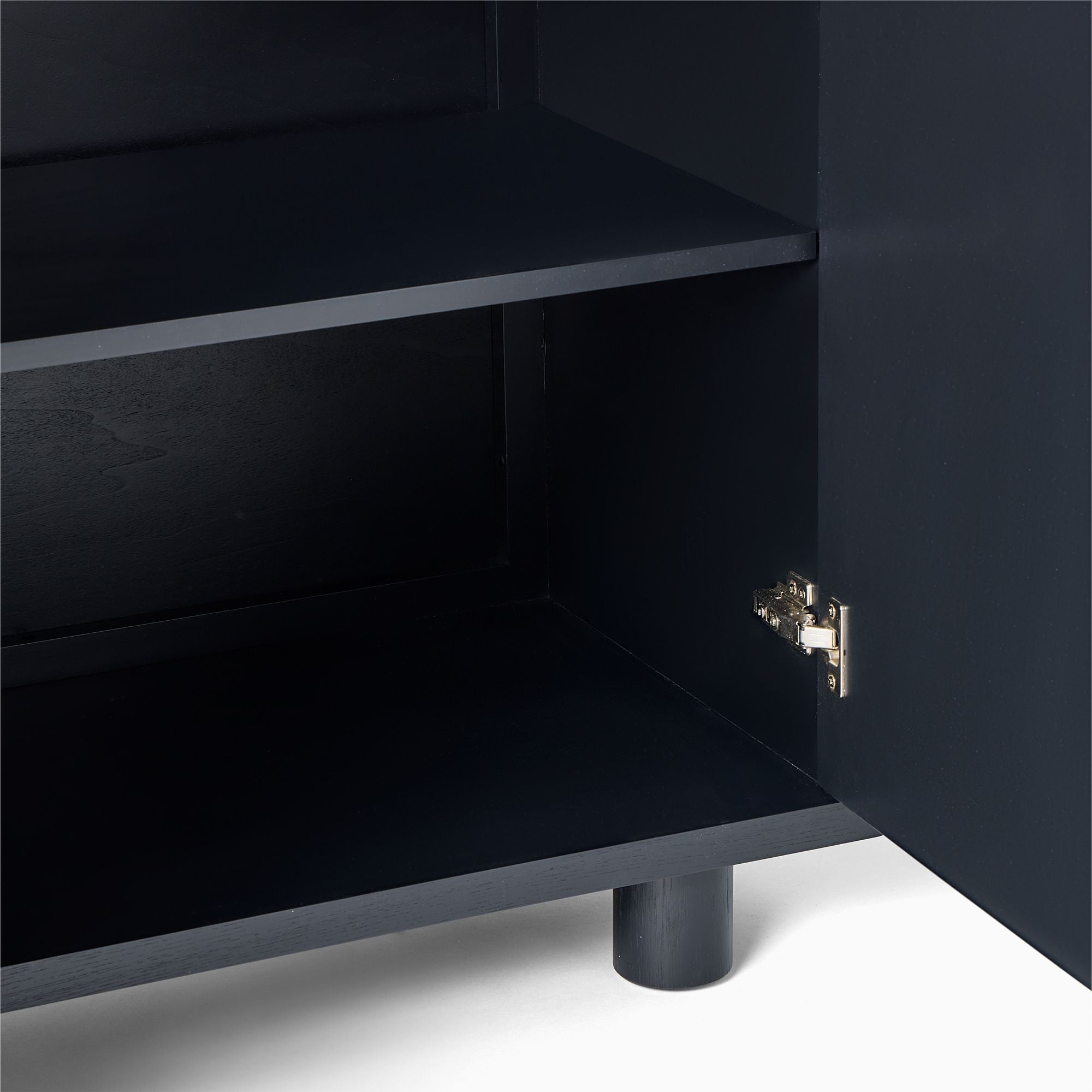 - The Hazel Reed Cabinet Rack features a sleek, contemporary design with clean lines and a refined finish. Its minimalist aesthetic complements various home decor styles, making it a versatile addition to your living room, lounge, or any other area.