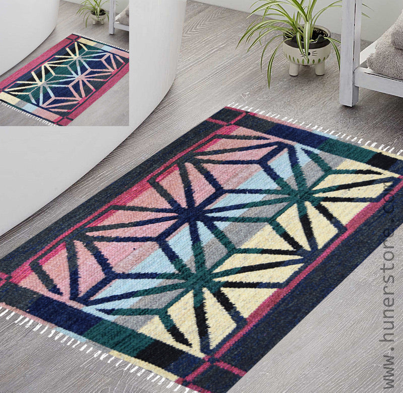 Honeycomb Handwoven woolen rugs by the skilled artisans, these floor mats provide a rich cultural embellishment to your living rooms.