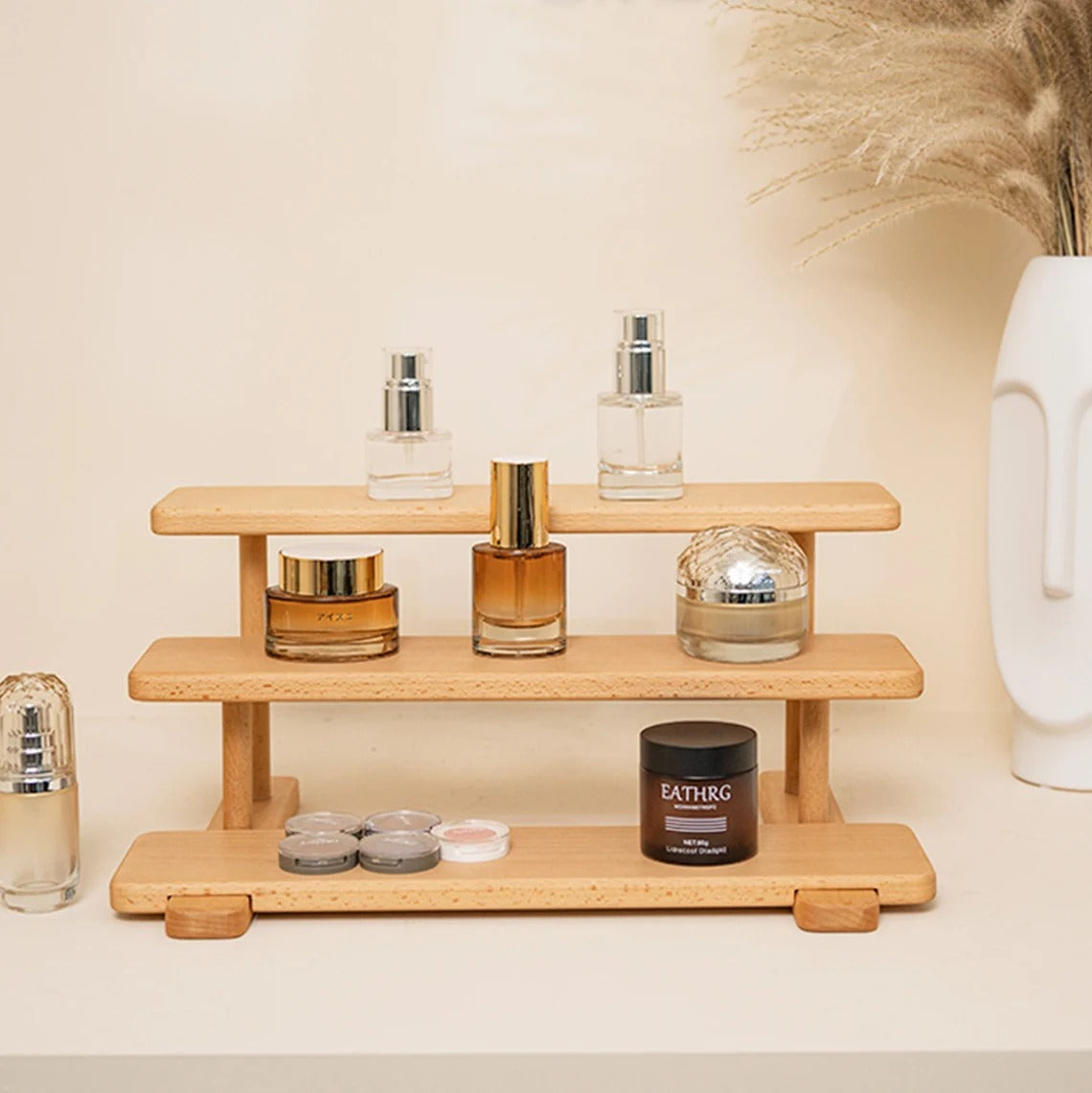 The solid wood handmade jewelry display stand is practical and sturdy, with 3 layers of trays, which can meet the daily display of watches, necklaces, jewelry, toiletries, etc.
