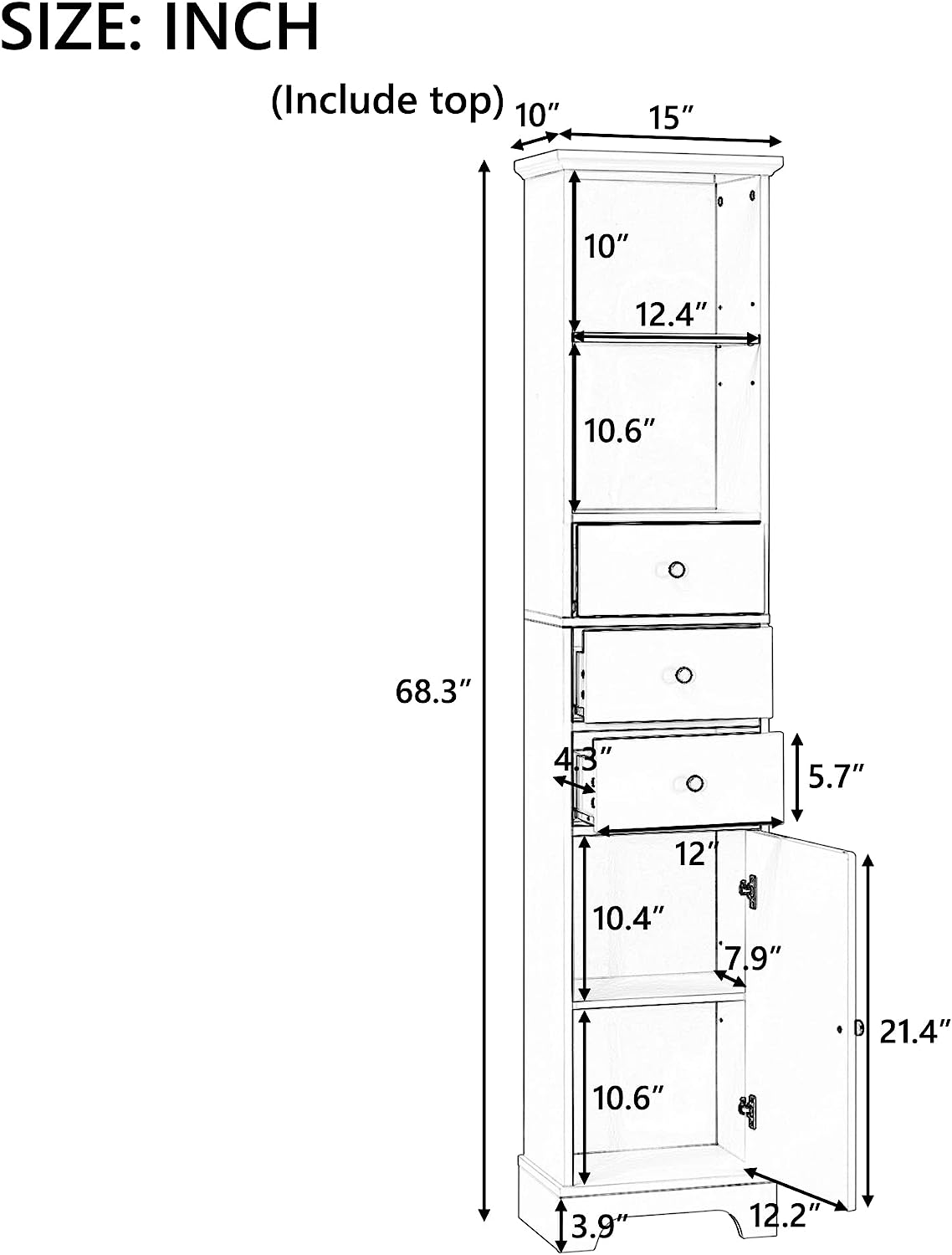 - The shelf of this cabinet can be adjusted into three different heights and to hold items in different size. You can put shampoo, towel, body lotion, tissues and storage basket etc., which totally satisfies customers' different needs.