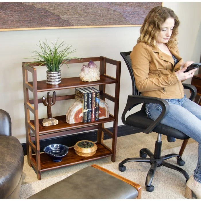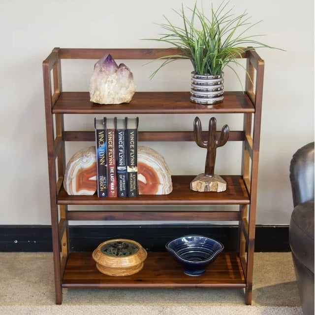 - Add rustic charm and extra storage to your living room or home office with this functional commercial-quality folding bookcase.