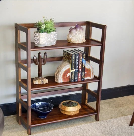 - Plus, this bookcase is foldable, allowing you to tuck in the shelves and legs whenever you want to store it away.