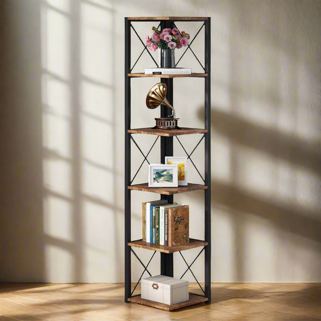 Maximize the corner space of your room, kitchen, and balcony with this corner shelf unit, which can work as a small corner bookshelf, etagere bookcase, display rack, and plant shelf to help your home out of the clutter. 6-Tier Storage Shelf: This corner shelf features a six-tiered structure that provides plenty of storage space for displaying books, vases, crafts, photo frames, potted plants, and other knickknacks.