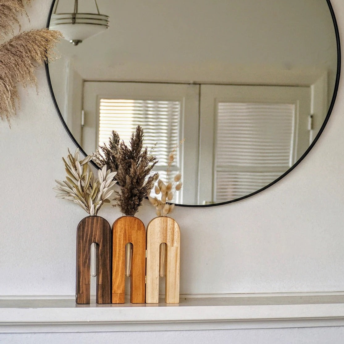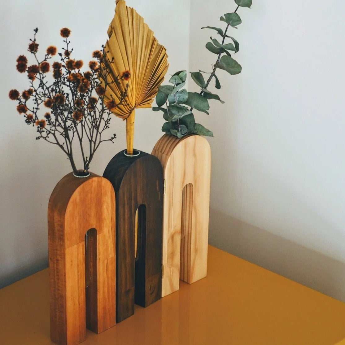 - Stunning and versatile design of wooden vases that can be displayed in different positions
