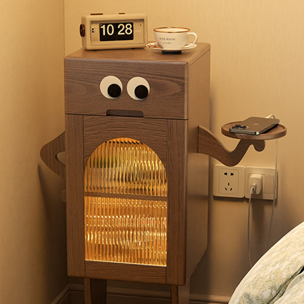 Embrace the unique allure of the Robot Nightstand With Light, a delightful addition to your bedroom with its cozy ambient glow and handy storage.