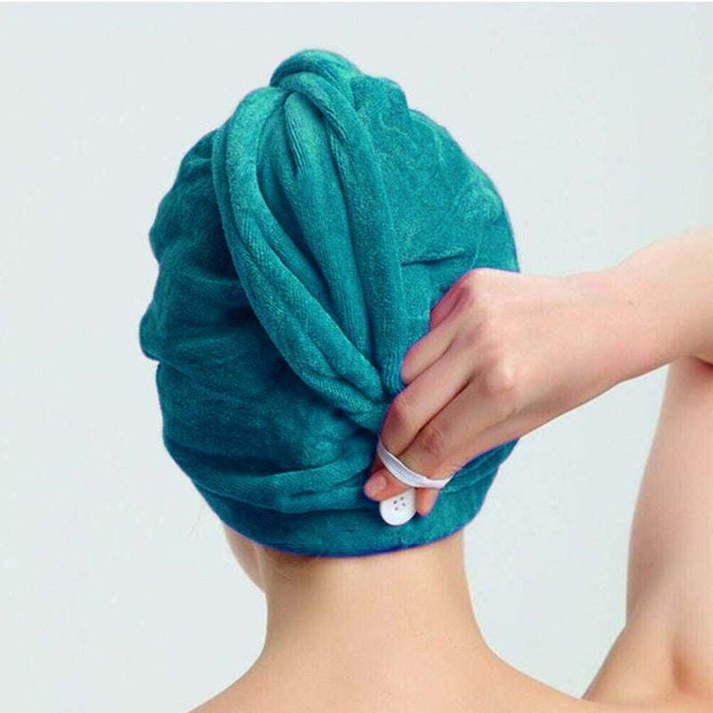 An amazing cap-shaped towel that can be twisted into position. - Designed to fit your head perfectly, much better and easier to use to wrap your hair than a conventional towel. - Super water-absorbent ability, fast and easy without an electric hair blower to dry your hair. - Button & loop for keeping it.