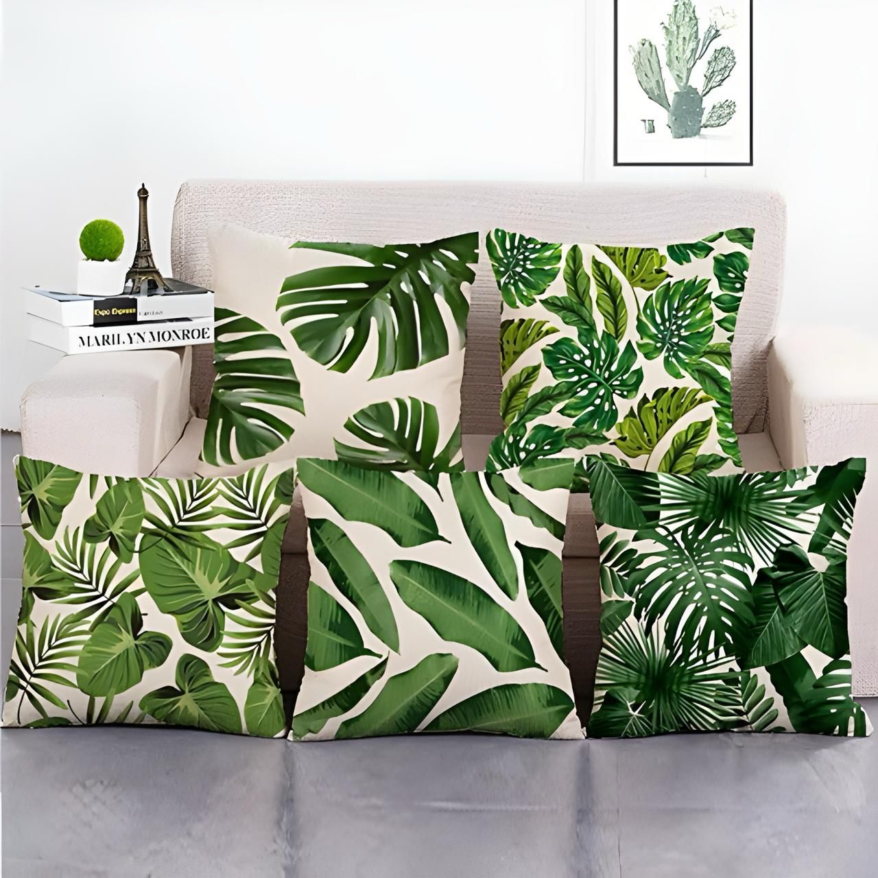 - 1 *Tropical Green Leaf Cushion Covers Pack of 5