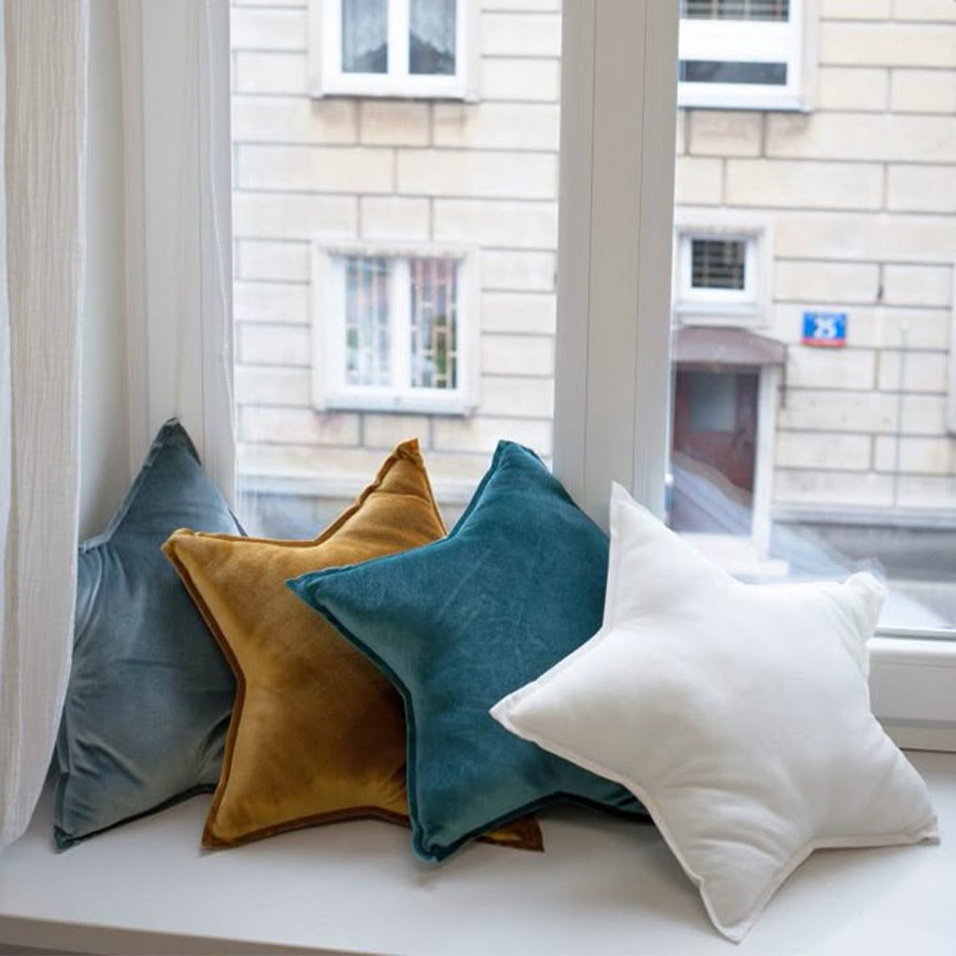 Featuring a bold star silhouette in variety of colors, these cushion combines playful design with sophisticated style. The smooth velvet surface adds a touch of glamour, while its unique shape makes it perfect as a statement piece for sofas, beds, or cozy reading corners.