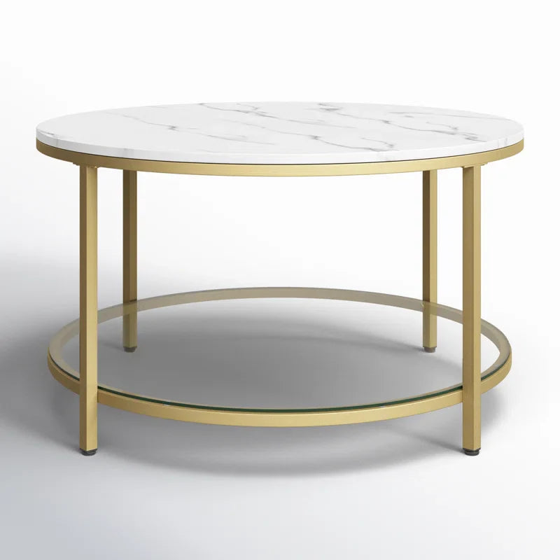 The bottom glass shelf provides additional storage or display space, keeping your essentials organized while maintaining an airy, open feel. Perfect for both contemporary and classic interiors, this coffee table serves as a stylish centerpiece, elevating the aesthetic of your living room.