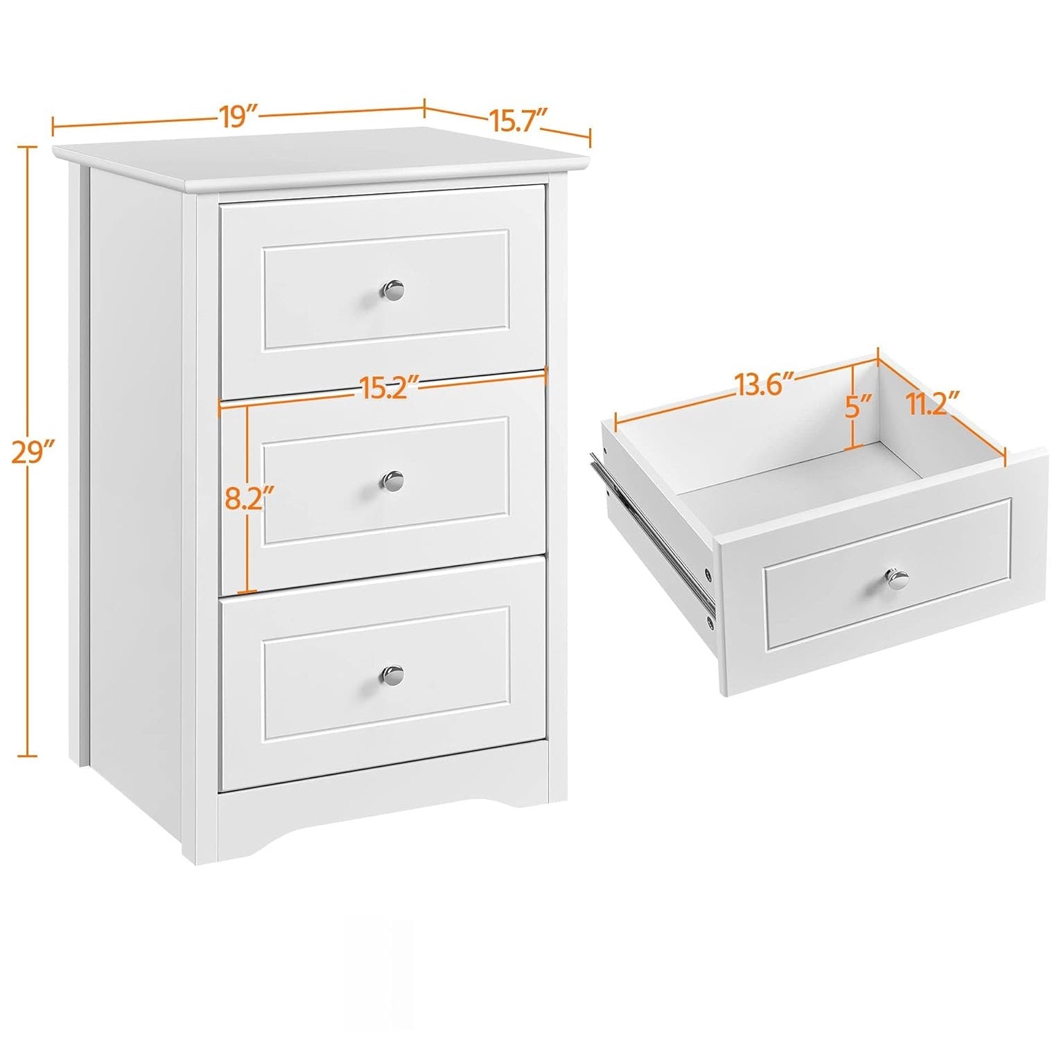 - The 3-drawer wooden cabinet is built in a cuboid shape, very steady as a rock. For normal and safe use, please do not put overweight items. Notably, the table is equipped with an anti-toppling device to prevent the table from wobbling.